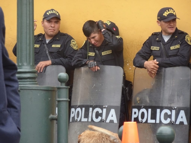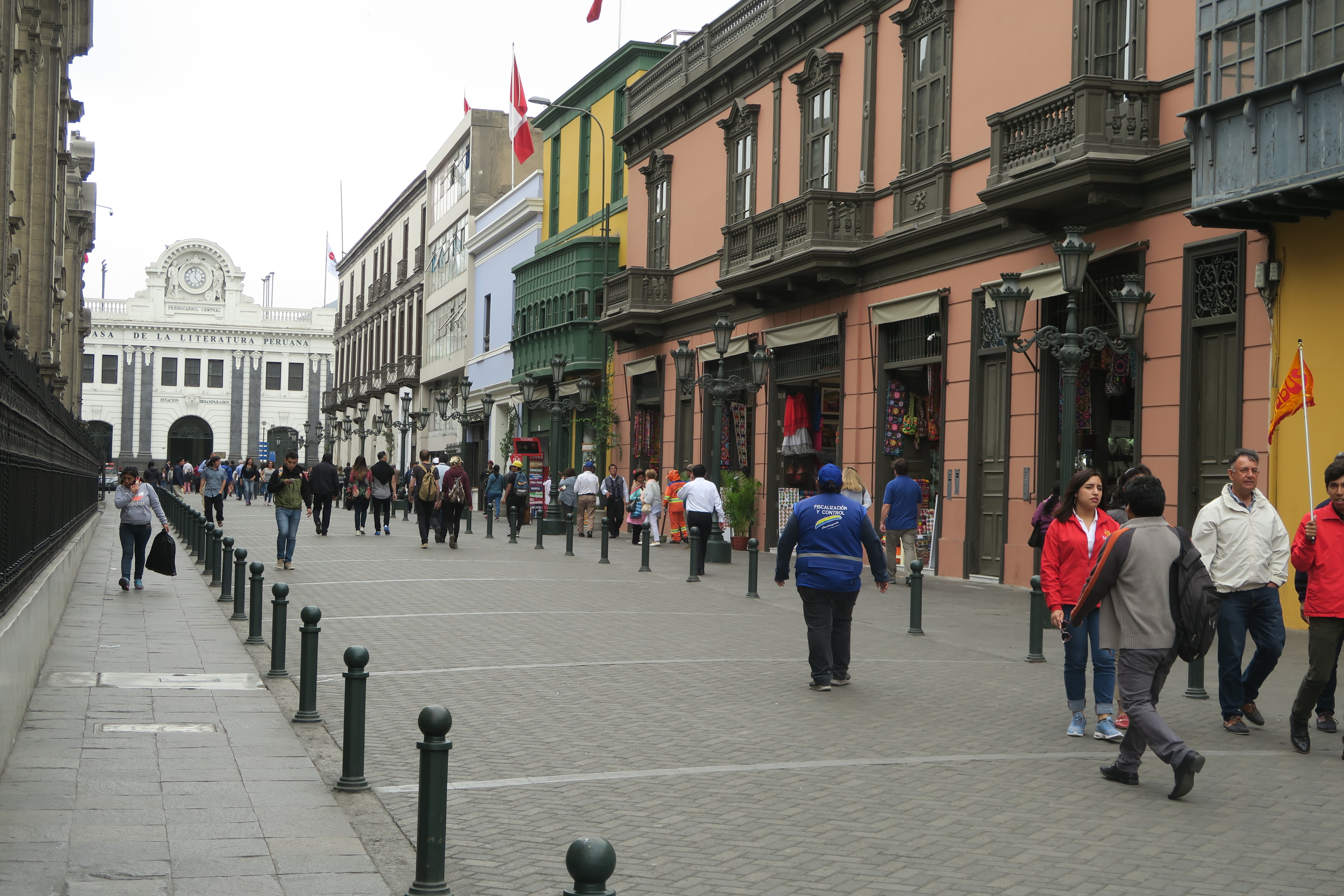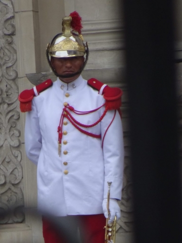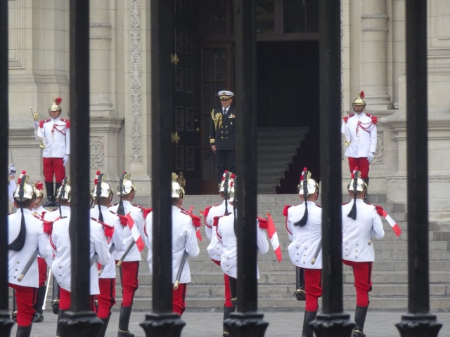 We only had one day to explore Lima so early the next morning we headed into town in a taxi placing our lives in the hands of the taxi driver and armed with a small map and walking tour set off. We started in Plaza San Martin and took time to admire Gran Hotel Boliviar on the square. After a bit of orientation we wandered up paved shopping street taking in the architecture until we reach Plaza de Armas. Here we were able to admire the grand cathedral and palce. We had arrived just in time to watch the daily changing of the guard which was a pleasant ceremony with a military band playing many tunes including El Condor which is the 2nd national anthem of Peru.