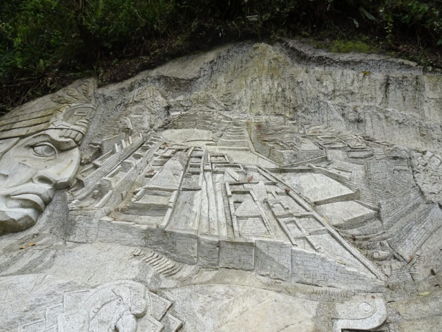 With the rain still continuing but feeling like it was slowing down a bit we continued on the path round the different sites, gradually the rain subsided and we were able to see more and pay more attention to our surroundings. However we were absolutely soaked and having packed light for the trip Barrie was wearing his only trousers so had to suffer damp trousers the next day. A lot of people had left during the rain but we stayed on top another hours and same the most amazing cloud displays as the clouds passed by the nearby mountains in rapid movements. Feeling the temperature dropping again and a few more drops we hurriedly made our way out of the complex to the coffee area just before it started pouring again. The bus journey down Barrie sat by the window and was able to experience the fear I had felt on the way up as he looked out the window at the wet road and the step drop at the side of him.