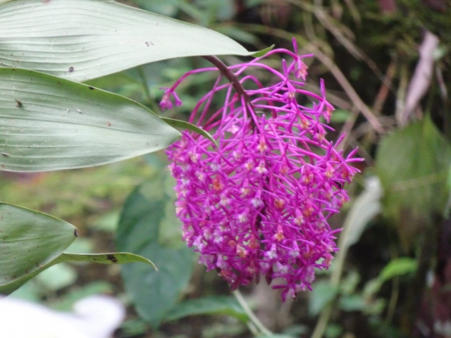 As well as visiting Macchu Picchu we spent a day in Agua Calientes, ironically this was the sunniest and driest day of all. We explored the town visiting the hot Springs which were unfortunately closed and then walked to the Macchu Picchu museum which is near the start of the climb up to Macchu Picchu. We discovered more about Hiram Bingham who was the American from Yale university who first discovered the existance of Macchu Picchu in 1911. The museum was small but interesting. At the side of the museum was a small botanical gardens that we took time to explore. After visiting the museum we followed a trail that said about 35 mins walk as we reached the top of the hill we were a bit confused a there was a railway track and lots of people were walking along it. We soon realised this was the direction we were meant to be headed and the trail was along the railway tracks. We followed everyone else confident in the fact it was safe and no trains were coming when suddenly we heard in the distance a train whistle and felt the rumble of a train on the tracks. We stood to one side to watch the tain go past. This was repeated a few times while we walked along the tracks with everyone else. The walk was tiring and much longer than 35 mins. We finally arrived at the gardens of Mandor that lead to the cataract of Mandor (waterfall) , by this time my feet were hurting and I was complaining but decided to go into the gardens. We were glad we did as they were beautiful and we saw lovely plants and a few bright coloured birds.