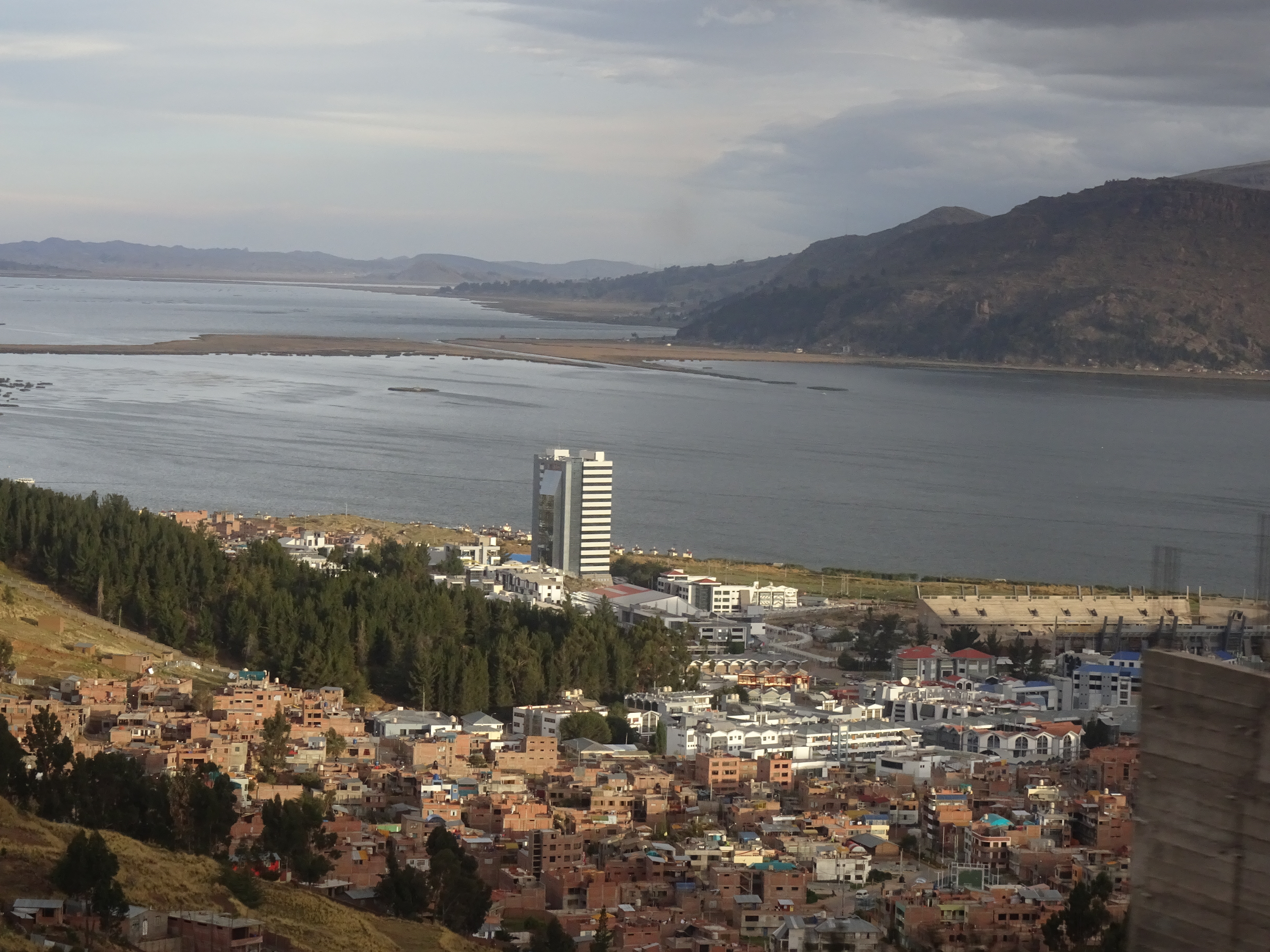 We arrived in Puno, on lake Titicaca at the bus station and got a taxi to our hotel.   I had booked a reasonable quality hotel as we had heard there was not much to do at Puno and it was a basic place.  As we drove in the taxi we could see the town was as had been expected a bit run down.   Our hotel was the Royal Inn, which we had booked only for 2 nights as we were not sure of our next plans, had  a welcoming and bright reception.  We were given our key 419/SP4, it was not initially clear why it had 2 numbers but the lady said it would have SP4 on the door.   When we arrived at our double room we soon realised it was a suite with sitting area, dining area, massive double bed and the biggest Jacuzzi bath we had ever seen.  It was a bit dated but clean and spacious.  Within a few minutes we made a decision to book an extra night !!