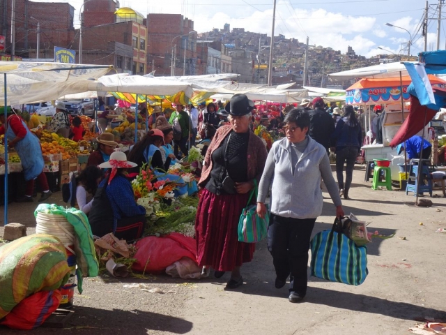 The next morning we woke and got dressed and Barrie looked for his phone but could not find it, we went down for breakfast but Barrie quickly returned to the room to look for his phone.  After methodically emptying everything out and searching in all bags we had to come to the conclusion after more than an hours, it was gone.   We know that he had it the previous evening in the room and he did not intentionally take it out with him but it was possible that when he went to get his coat he did pick it up and put it in a pocket.   The next hour was spent contacting organisations as needed to inform them and make sure finances were secure.   Barrie was obviously feeling a bit down and I decided we needed to get out, so we put on coats and headed down towards the lake.  It was a good decision as we were able to sit by the side of the lake watching birds and generally unwinding.    After a lunch at a local restaurant we headed back towards our hotel to find ourselves in the local market that was full of colour and interesting produce.   We had been told about the number of different varieties of potatoes, 4000, but this was the first time we were able to see first hand stalls full of different spuds!