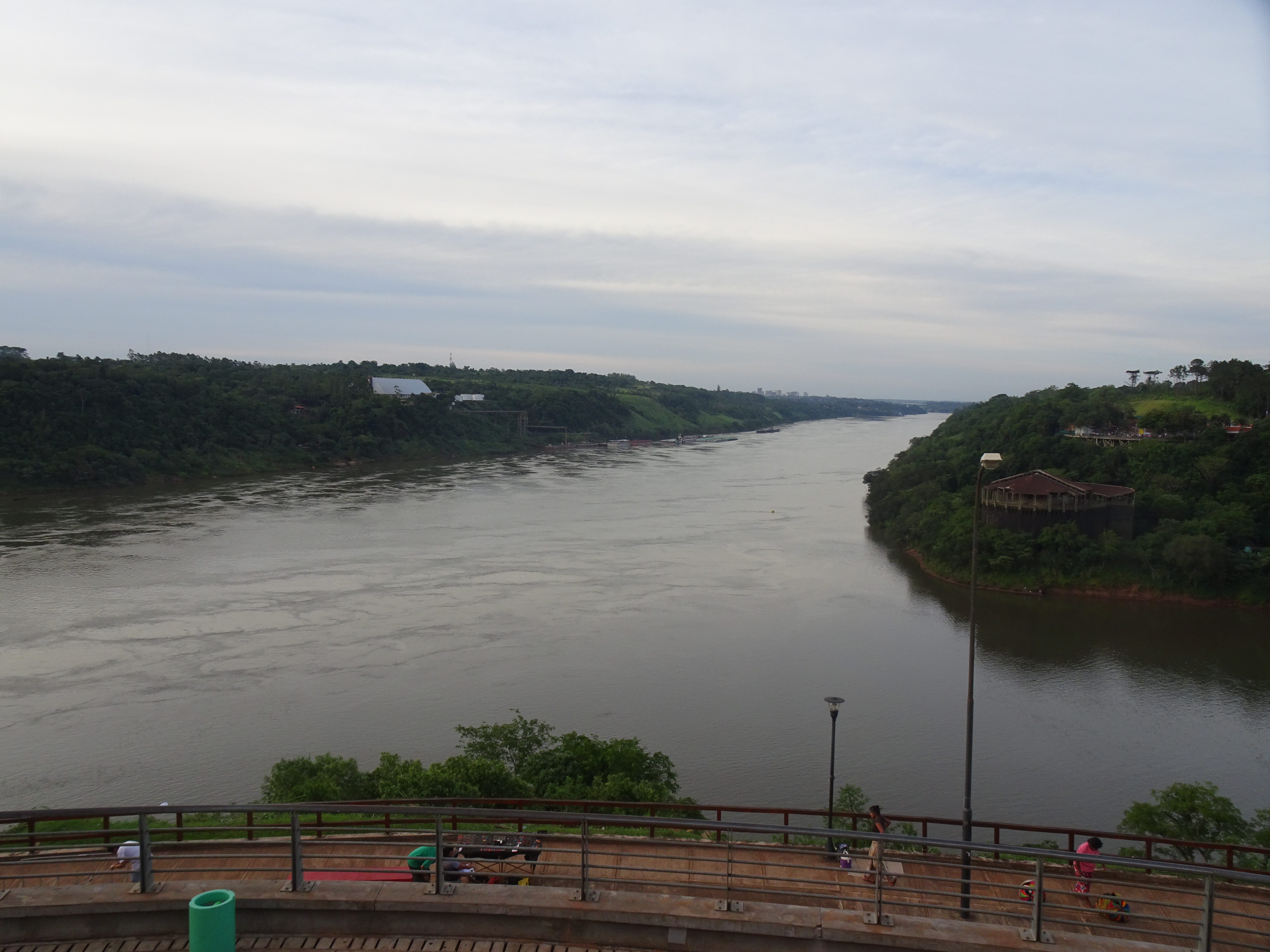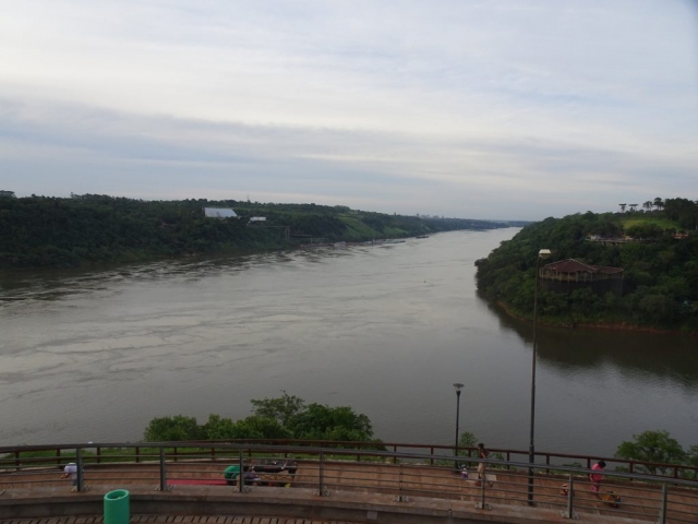 We didn’t really know what to expect at The Triple Frontier, and actually, it was a little bit more interesting than we expected. We arrived at a promontory, overlooking the Iguazu river, that curved around us. Opposite us, the Paraná river flowed into it. Over the Iguazu, to our left was Paraguay, and to our right was Brazil – the two separated by the Paraná. Brazil had a similar touristy lookout point opposite us but. Paraguay had nothing.
