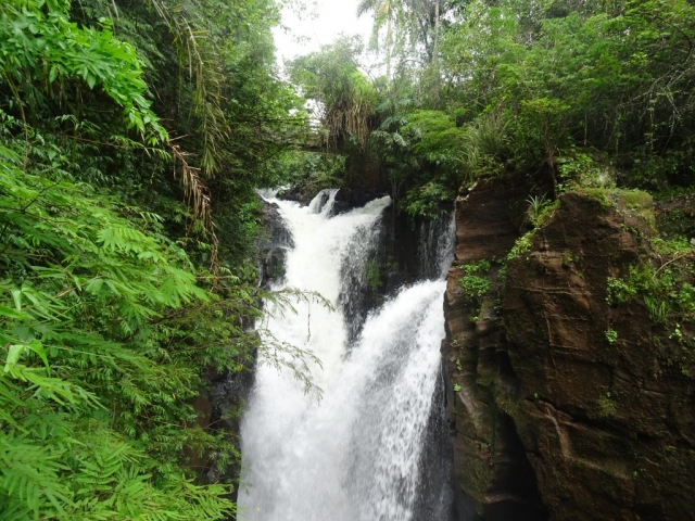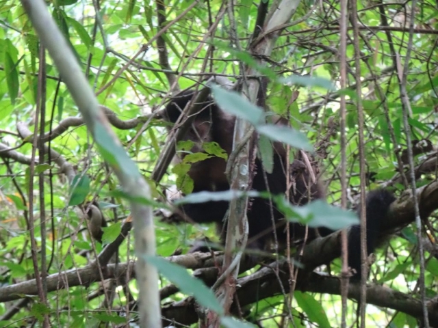 It was very warm and humid. At first, we walked through rain forest on a good dirt road, passing a number of abandoned hotels, then after about 15 minutes, we joined a tarmac road, and, a few minutes later, reached a junction where we turned into the town.