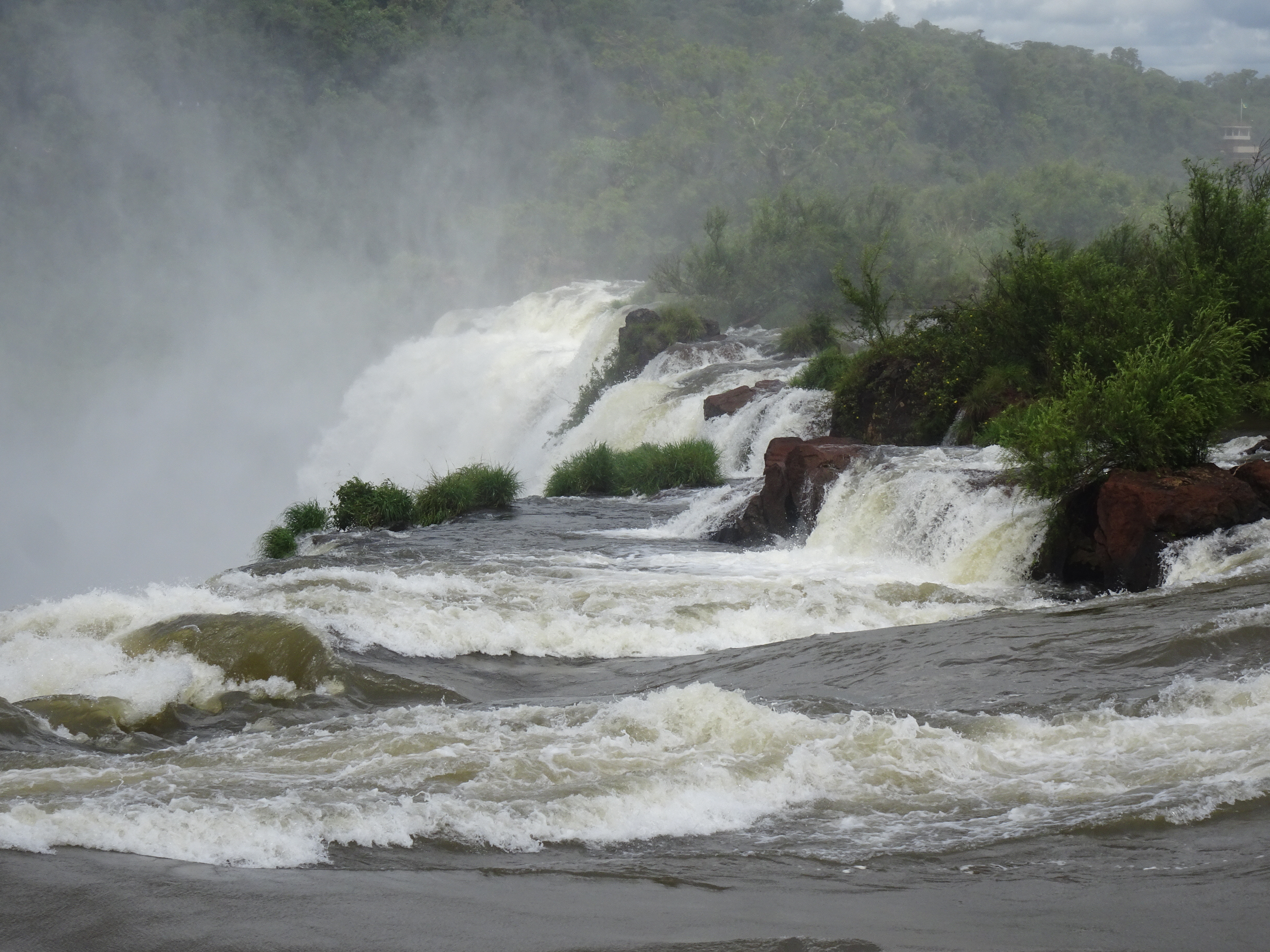 Although the “Devils Throat” is an assault on the senses, its almost impossible to take photographs of: firstly, because it’s just featureless whiteness, and secondly because the spray saturates everything in seconds. After a few wet deafening minutes, we headed back along the walkways to the station. We boarded a train back down to middle station where we could do the “The Upper Falls”. Unfortunately the train we got did not stop at the middle station so we had to disembark at the lower station and walk back up.