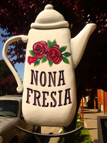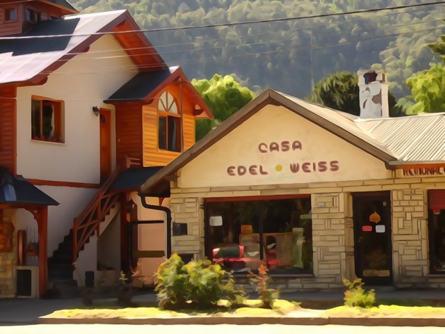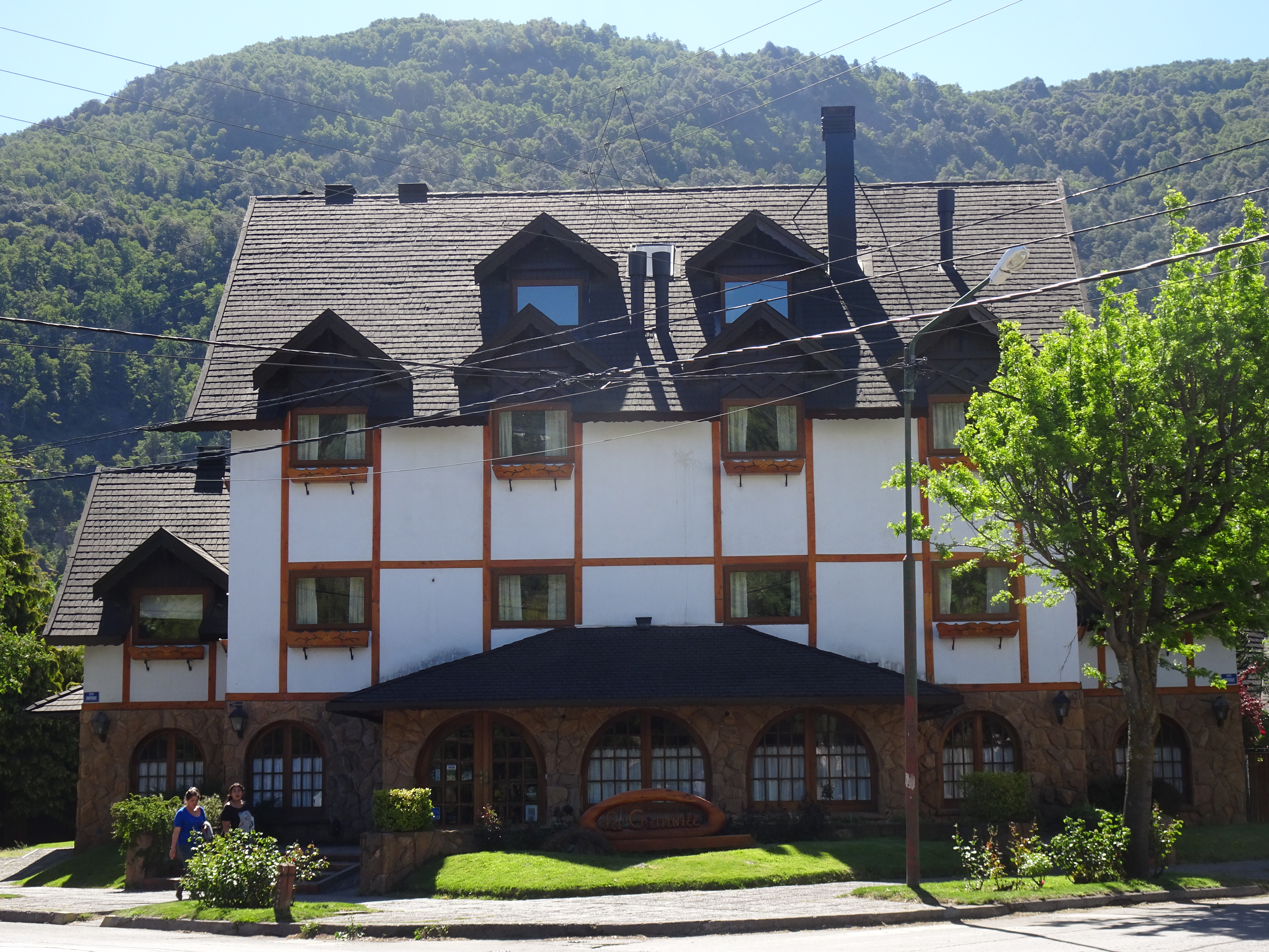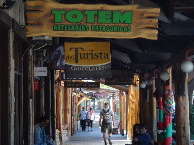 After about an hour and a quarter of driving (plus some stopping time), we came to the village of Villa La Angostura. We parked in a side street and wondered around stopping for a coffee and some artisan chocolate. The tree-lined main street was some distance from the lake and lined with low-rise tourist shops, chocolatiers, outdoor shops, cafés, bars and restaurants.