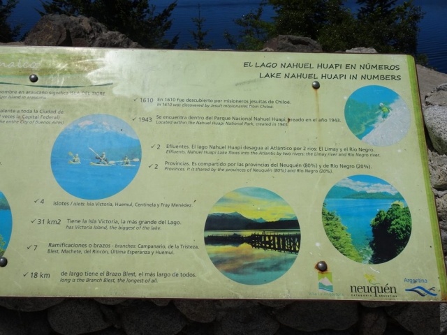 Villa La Angostura is where the Seven Lakes Road really begins. Between there and San Martin, the road passes close to seven lakes – Machónico, Escondido, Correntoso, Espejo, Lácar, Falkner, Villarino – over sixty-eight miles. At each lake along the road there was at least one ‘mirador’ – that is a viewpoint, with space to pull off the road, information boards, and even,sometimes, toilets! We stopped at most of these at first, to take photographs and take in the view, but the journey was taking too long so we had to skip a few.