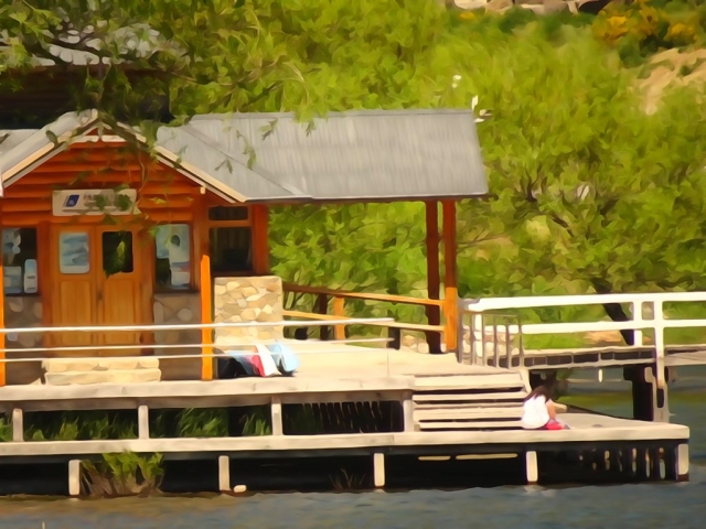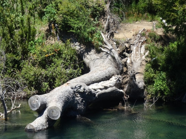 On our return to Villa La Angostura, we wanted to see the lake front that we hadn’t seen previously, so we turned off the main road before we got into town and follow the shore round. We were immediately in a network of dirt tracks, and throwing up huge amounts of dust in our wake. Eventually, we emerged at Puerto Angostura – a lakeside area with a small beach, a cafe, and a jetty with several craft docked, where you could take boats across the lake. We went into the cafe for drinks to combat the just of our drive and stayed about half an hour.