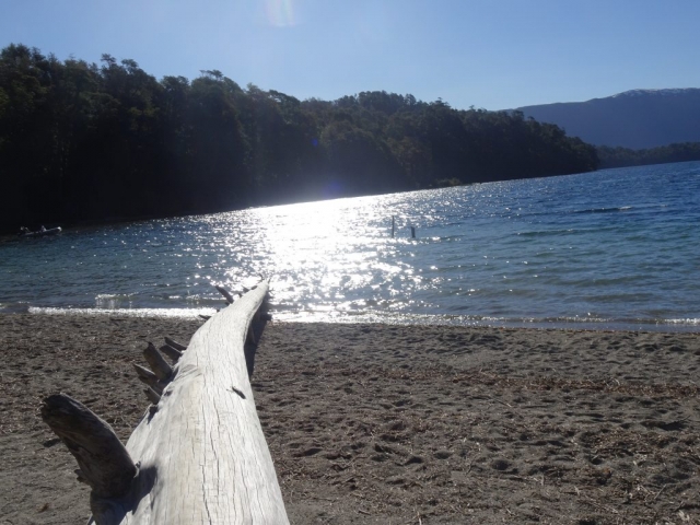 We finally pulled into San Martin about 15:00. The town seemed attractive and prosperous, but a little quiet as it was siesta time. We had a quick walk along the lake front, which was beautiful enough, but didn’t appear to have many restaurants, so we strolled into town looking for the ‘touristy bit’, where we could get some lunch. A lot of places were closed, but we found a local pub for a late lunch. After strolling around we didn’t leave San Martin until 17:00ish. We drove a bit faster on the return journey with less stops until we got to Lake Espejo where we stopped at a beach at the end of the lake for a rest. We stayed for about thirty minutes taking photographs and paddling in the cool refreshing water. It was already 19:00hrs when we left but still very light.